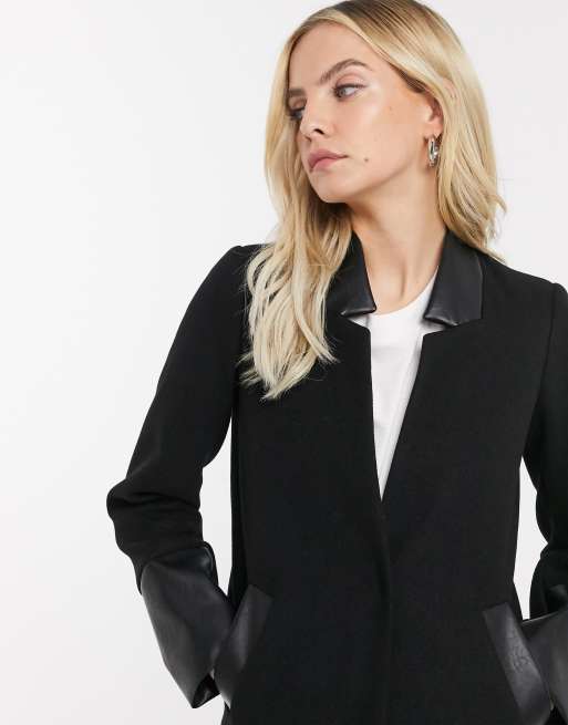 River island collarless coat in on sale black
